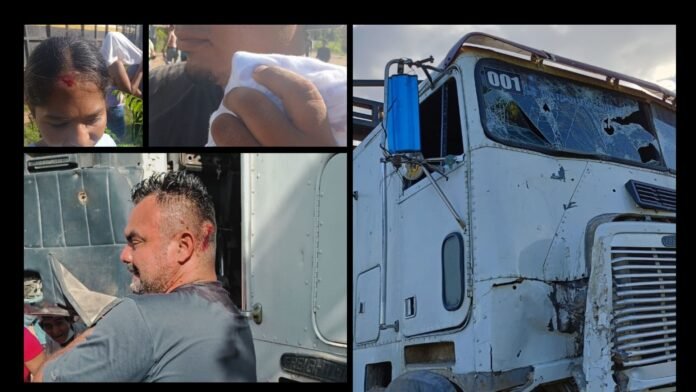 Numerosos videos que aparecen en redes sociales muestran cómo una muchedumbre violenta se adueñó de la carretera y apedreó a toda la comitiva. Algunos de los atacantes, además, portaban machetes con los que pincharon ruedas de camiones y amenazaron a los campesinos. También se lanzaron voladores y se amenazó con armas de fuego a diferentes personas.