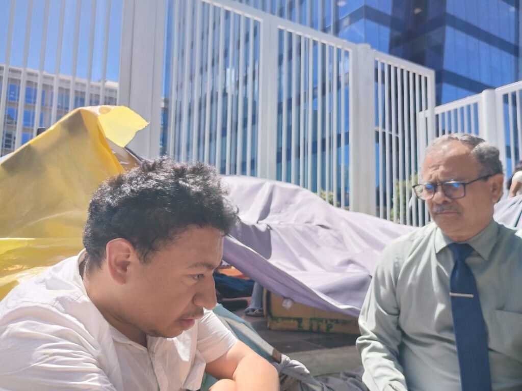 Tegucigalpa, Francisco Morazán (ConexiHON).- Luego de cuatro meses de haber inicia un campamento de protesta ciudadana en las instalaciones del Centro Cívico Gubernamental, los jóvenes Erlin Armando Mejía Andino, persona usuaria de silla de rueda y Allan Javier Mejía Núnez se mantienen firmes en su demanda a las autoridades de gobierno para que pongan en marcha un encuentro de diálogo nacional con todos los sectores del país, según declaraciones a periodistas de este diario digital.