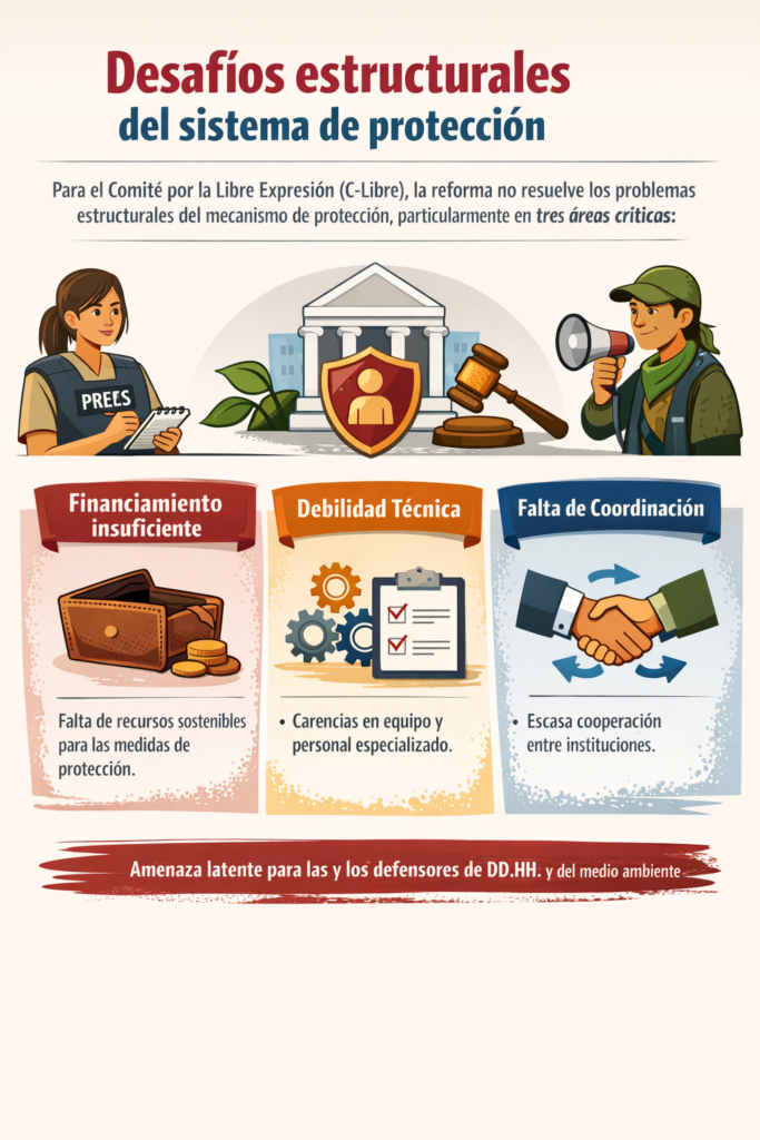 Las organizaciones defensoras y los gremios advierten que, de no abordarse estas brechas, el sistema de protección podría continuar siendo un instrumento limitado para garantizar la vida, integridad y libertad de periodistas, comunicadoras y comunicadores sociales, y personas defensoras de derechos humanos y ambientales en Honduras.